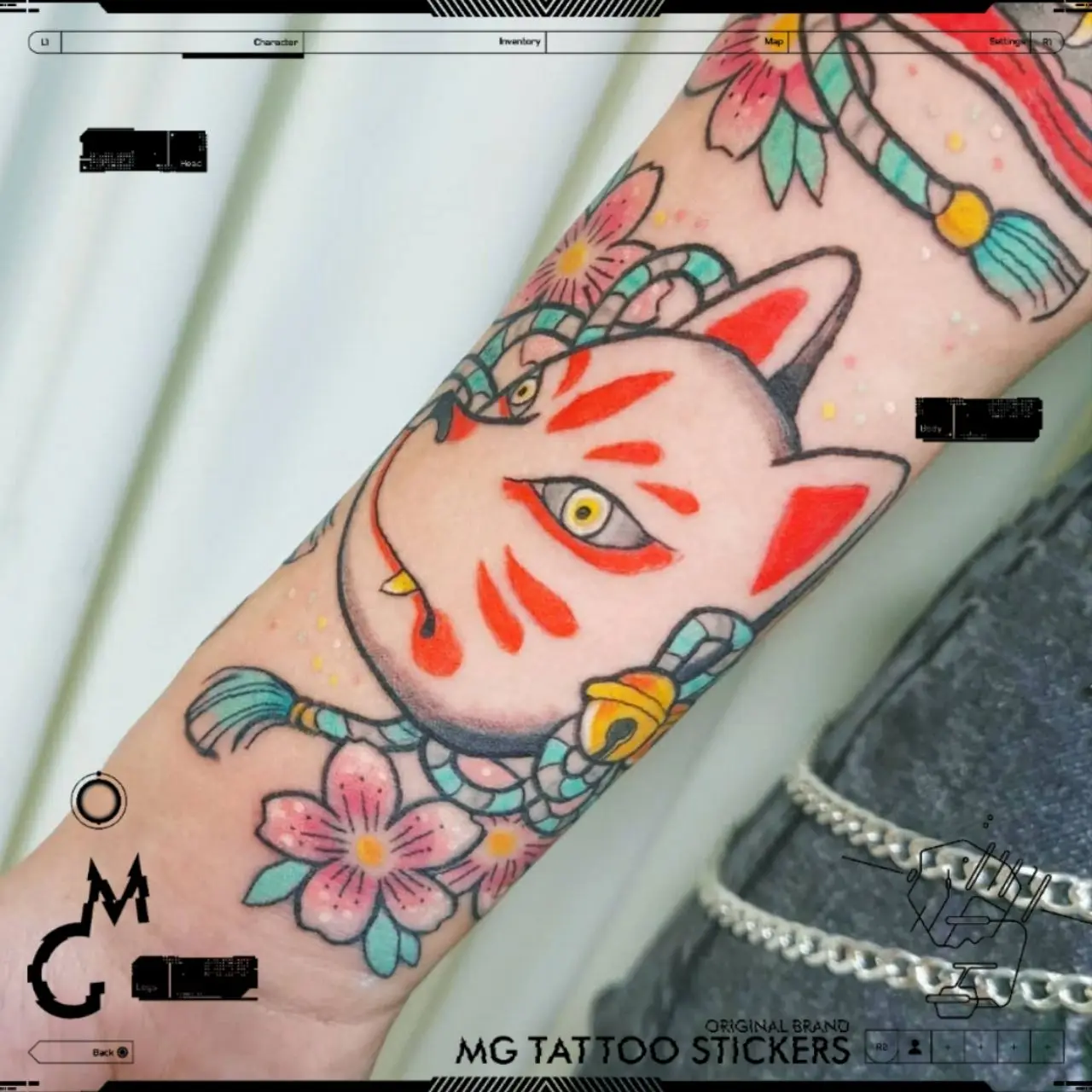 15 21cm Japanese Ukiyo E Playful And Cute Harajuku Style Mosaic Flower Arm Waterproof Fake Tattoo Sticker Aliexpress